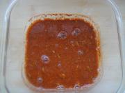 烤肉料20g倒入玻璃保鲜盒中。倒入少许清水,将烤肉料拌匀。