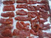 将肉片铺入烤盘上,烤箱中层200度,烤10分钟,注意中途翻面。