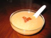 将梨子削去皮,粳米加少量水用搅拌机打成米浆。