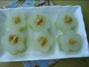 冬瓜切成梅花块,中间用勺子挖出个洞。