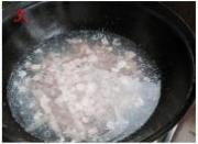 锅内放水烧开倒入牛肉粒、焯水水再次烧开即可捞出。