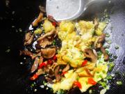 倒入香菇、辣椒稍微炒一下。