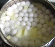 小锅放适量水,放入小元宵,小元宵煮熟后,加入苹果丁。