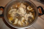 - 4(2):将锅烧热,放入菜籽油适量,等油烧热后,将生姜和大蒜放入锅中炒香,然后将鱼骨放入煎制一下,盛出备用,再锅中倒入低油,将买来的酸菜洗净,切段,用水泡下(太咸,减去味重)锅中放入适量的低油,放入生姜跟大蒜,爆香锅底,然后放入处理好后的酸菜,爆炒几下,烹入料酒,糖,注意:盐先不要放,因为酸菜是咸的,放入水,然后倒入煎好的鱼骨,大火烧开,让酸菜的盐酸味与鱼骨的鲜味跳出来吧,哈哈。(烧开5分钟左右)将味道调好,把鱼骨和酸菜盛入锅子中