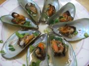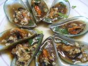 另把油烧热,把蒜茸爆香后淋在青口上,再滴一点点酱油。