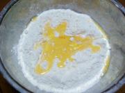 添加凉水和成比水饺面硬得面团,饧30分钟。