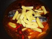出香气后加入清水和土豆,盐调味,炖20分钟左右。
