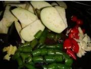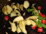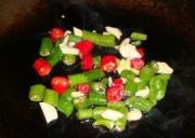 锅底留少许油,爆香辣椒 姜 蒜粒。