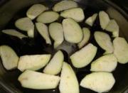 把切好的茄子放入盐水浸泡洗净捞出沥干水分。