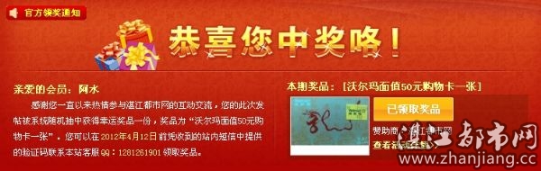 3)回帖内容必须满足活动规则,务必关注金逸影城、龙之珍珠、湛江都市网三家微博,缺一不可,并留下微博名,以便我们与您微博私信联系。 分享有奖:领到奖品的用户,在湛江都市网或新浪微博发帖分享中奖感言,即可额外获得金逸国际影城精美小礼品! 分享有奖发帖格式:参与湛江都市网盖高楼活动,领到XXX送的XXX奖品(例:如领到珍珠手链,即写领到@龙之珍珠-湛江店,送的天然珍珠手链;电影票就写领到@湛江金逸影城,送的电影通票一张,以此类推)+奖品图片,并@二位好友。就可获得奖品啦! 都市活跃份子奖:发帖数(主题数+回复数)达到20以上的会员在抢楼回帖时均有机会另外获奖,500份精美礼品等你来拿!详情请见http://www.zhanjiang.cc/bbs/thread.asp?Tid=3988 来源:湛江金逸影迷俱乐部