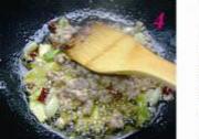 放肉末煸炒,滴少许料酒、生抽。