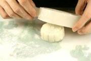 掌心轻推包好收口,搓圆成月饼毛坯。