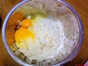 莲藕洗净去皮,切细丝,鸡蛋打入碗中。