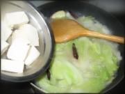 添加焯水的北豆腐,大火煮开。