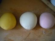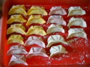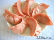 同样的方法包完两种口味的不同颜色的饺子。