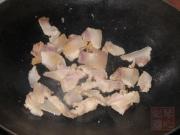 起油锅,爆香姜蒜,下咸肉煸炒。