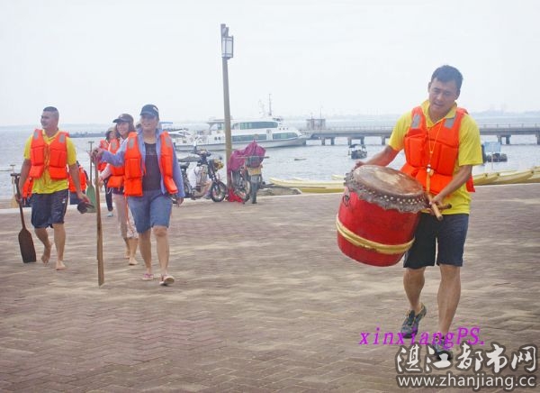 今天上午,情暧湛江志愿者龙舟队20多人一早赶到赤坎金沙湾龙舟训练场,在沙滩上、海面上来回试水训练。据了解,他们将参加由国家体育总局社会体育指导中心、中国龙舟协会、广东省体育局和湛江市人民政府在6月23日联合主办2012年全国龙舟月?第六届中国湛江海上龙舟邀请赛。