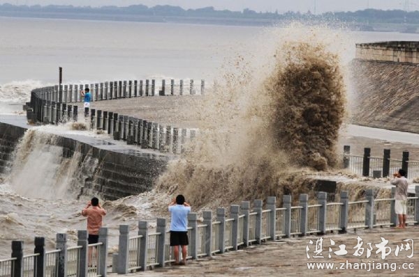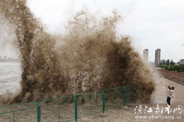 2012年6月5日,浙江海宁,老盐仓回头潮掀起大浪。