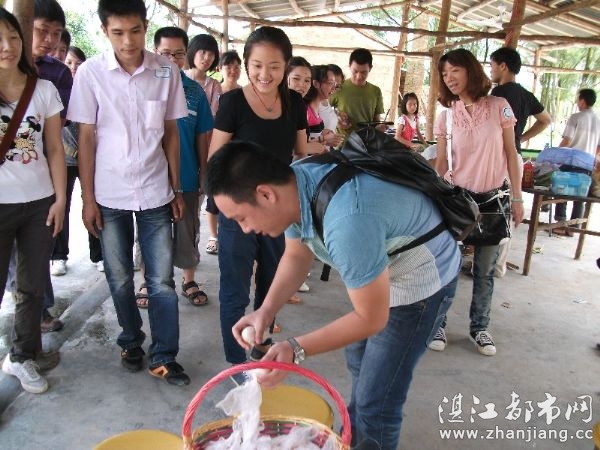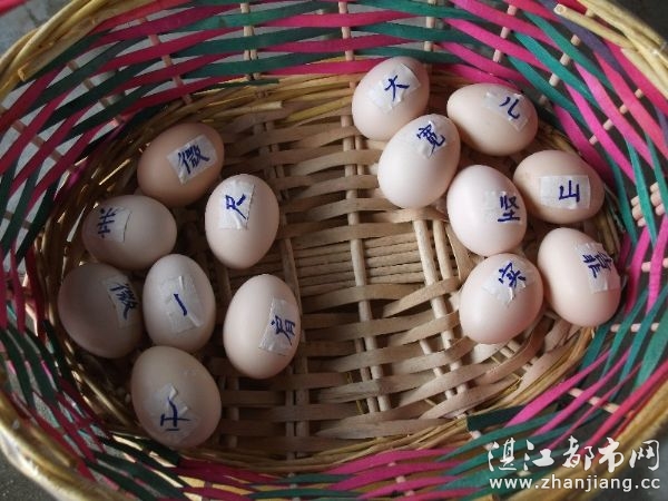 吃过饭了,大家休息了一会,然后进入神秘大奖抽奖环节。由各小组选出一位代表,这位代表在一篮子的鸡蛋中,挑出自己小组的那句诗的7个鸡蛋,并按顺序由每个组员排好队,花费时间最少并且顺序正确的“够坚气象台”获得了抽奖的资格,由陈老板抽出了一位神秘大奖的幸运儿——岳君,获得了一瓶农庄自己采集的桉树蜂蜜。所有参与活动的志愿者都拿到了父亲节的特别礼物——寻找到的宝物“鸡蛋”。