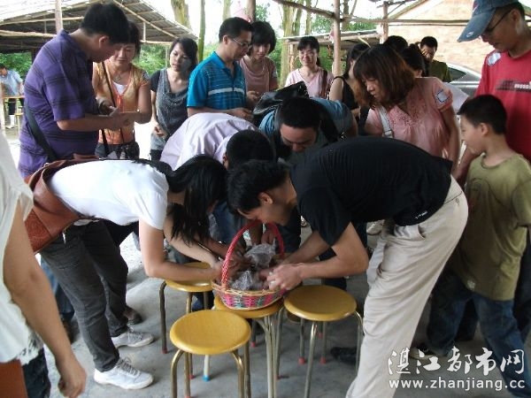 将参加活动的志愿者进行分组后,志愿者之间进行简单的认识、交流,给自己小组起名字。然后由Woo讲解寻宝游戏的游戏规则、注意事项。在活动中首先要注意安全,其次要有团队意识,再次是要听从组长的安排,集体行动。寻宝游戏分为两个环节,第一个环节是埋宝环节,先由A组“A头必胜”到B区埋宝,B组“够坚气象台”到C区埋宝,C组“寻宝者联盟”到D区埋宝,D组“头文字D”到A区埋宝,埋宝的时候要每一个埋宝点分别拍摄一张近照和一张远照的“寻宝图”,埋宝环节限时30分钟。30分钟很快就到了,各小组都回到集合地点交换“寻宝图”。各小组都拿着自己小组的“寻宝图”到自己小组的区域寻宝。在一个小时的地毯式搜寻中,D组“头文字D”小组不愧是速度第一,在短短的25分钟内就把所有的7个宝物都找到,并回到集合地点,接下来的是“A头必胜”小组花了35分钟把7个宝物找到并回到集合地点,遗憾的是A组把2个“宝物”(鸡蛋)弄破了。B组“够坚气象台”在规定的1小时内只找到5个宝物,而C组“寻宝者联盟”则是两手空空。最后获胜的D组每位组员获得一只由农庄陈老板赞助的老母鸡!