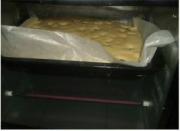 筛人面粉,切拌均匀,倒入铺了油纸的烤盘。