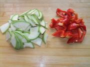 香菇入沸水中快速焯烫下后捞出,冲净沥干水切片。