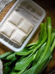 加入适量冷水,煮开,再煮5分钟。豆腐调好味,盛起淋在菜心上。