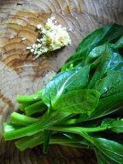 菜心洗净,只取嫩尖。生姜洗净、切细末。