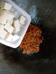 豆腐冲洗一下,切小块;牛肉末加盐、淀粉拌匀。