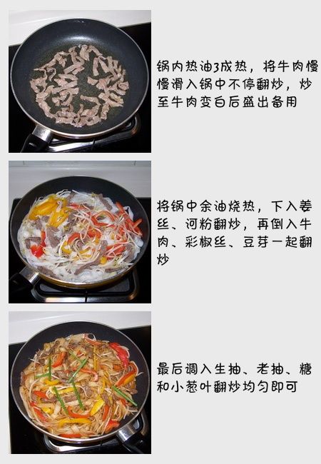 小叮咛: 1.如果是超市购买的干河粉,一定要提前煮过再炒。 2.炒河粉时油量要掌握好,油稍多点较好,炒出来的河粉不会干。 3.最好用木铲轻炒,这样才可以保证河粉不会炒碎。