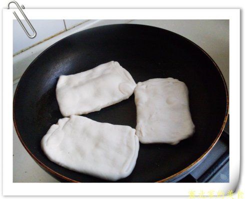 原料:面粉 驴肉 做法: 1、面粉,分次加入温水,和成软硬适中的面团,饧发30分钟,再揉一次,至面团光滑。 2、尖椒洗净,切碎,备用;熟的酱驴肉切碎,备用。 3、把饧好的面团搓成长条,分成大小相等的剂子。 4、把剂子按扁,擀成长形薄片,抹少许油撒少许盐。 5、让后自左右向中间对折,再上下对折,就就像叠被子一样,做成火烧饼胚 6、平底锅置火上,烧热,放少许油,把饼胚放入平底锅,小火烙至两面金黄即可。 7、用刀把火烧的一边拉开,把尖椒碎和驴肉塞入火烧里,就可以开吃了。