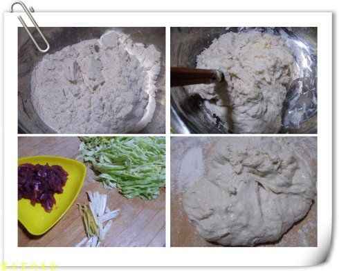 1、面粉放盆里,分次加水,用筷子把面粉和水搅成软面团,饧发20分钟。