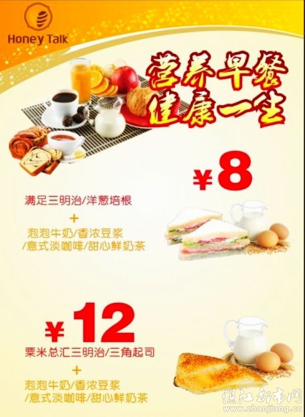 8元套餐:满足三明治/洋葱培根+ 泡泡牛奶/香浓豆浆/意式淡咖啡/甜心鲜奶茶