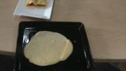 再把刚才的面糊用勺子舀到烤盘里,抹均匀不在太厚哟!(要想口感更好,最好用一个筛子将面糊过滤一下,就能达到想想要的QQ感了)