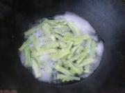 锅中放足量清水烧开,加入少量盐下苦瓜汆一分钟。
