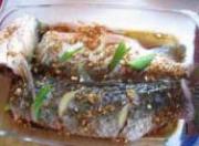 将调好的料汁均匀地涂抹在鱼身上与刀口里,刀口里放入姜片,葱段,容器底也放上葱姜片将鱼腌制40分钟至几小时均可。