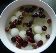 鹌鹑蛋煮熟剥皮备用,红枣龙眼肉分别洗净。