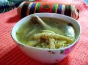 姜倒入汤煲。烧开后会有少量的浮沫,撇掉;
