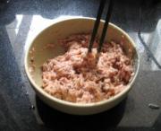 1、肉茸要搅拌起胶,也就是拌至插进筷子不会倾斜。