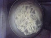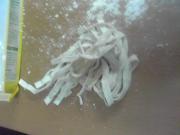 用刀切成均等的宽度。我喜欢吃宽面,有嚼劲。