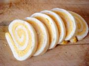 双色卷切成均匀的薄片。