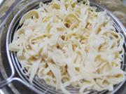 把过凉后的豆皮丝倒出,沥干水