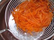 红萝卜丝也像豆皮丝一样,放入沸水中氽烫1--2分钟