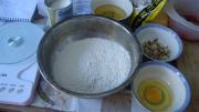 原料:普通面粉100克、细砂糖20克(可以多放,我不太喜欢太甜的)油55克、鸡蛋10克、花生碎30克、泡打粉1/4小勺、小苏打1/8小勺。