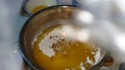 将花生碎倒入面粉中、混合均匀。再倒入油中混合。