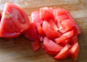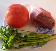 主要食材,西红柿一个,一块新鲜的牛肉,香菜少许。