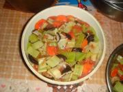 把切好的芹菜,萝卜,香菇放到窝里吵。