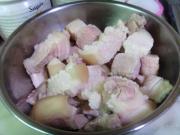 1、五花肉切小块,入开水中焯一下,洗净出锅备用。