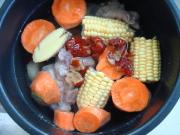 将各种材料洗干净,玉米、胡萝卜、马蹄切块。