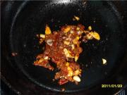 下豆瓣酱加入葱姜蒜片煸炒至酱发红出油。